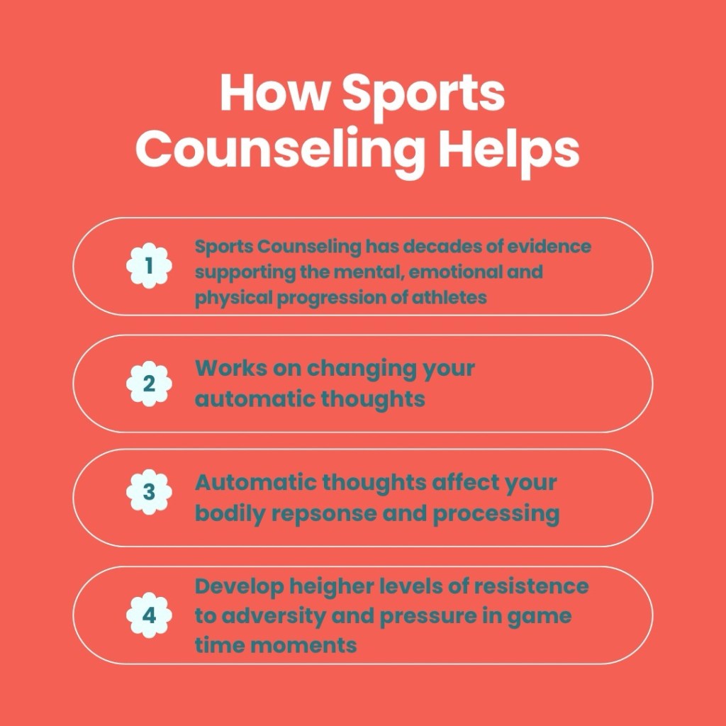 Sports counseling of course has its benefits, but the purpose makes it unique. Not only does it help with more optimal performance but when done consistently, we tackle the adversities we don’t see: